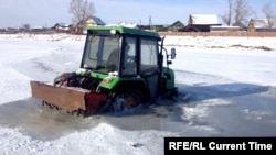Пока река еще толком не замерзла, под лед провалилась машина, а следом и трактор, который приехал ее доставать.