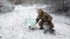 Украинский военный использует терминал спутниковой связи Starlink под Авдеевокй в феврале 2024 года